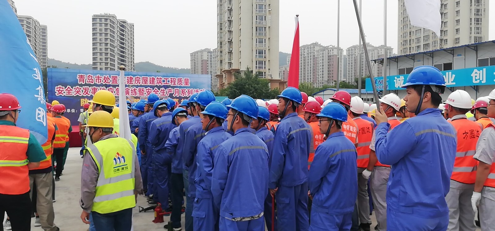6月17日,青島市住房城鄉建設局在李滄區上王埠、東王埠、桃園社區舊村改造商品房S6-3地塊項目組織開展了2019年在建房屋建筑工程質量安全突發事件應急拉動演練。